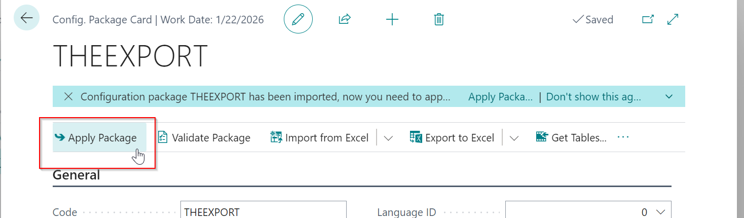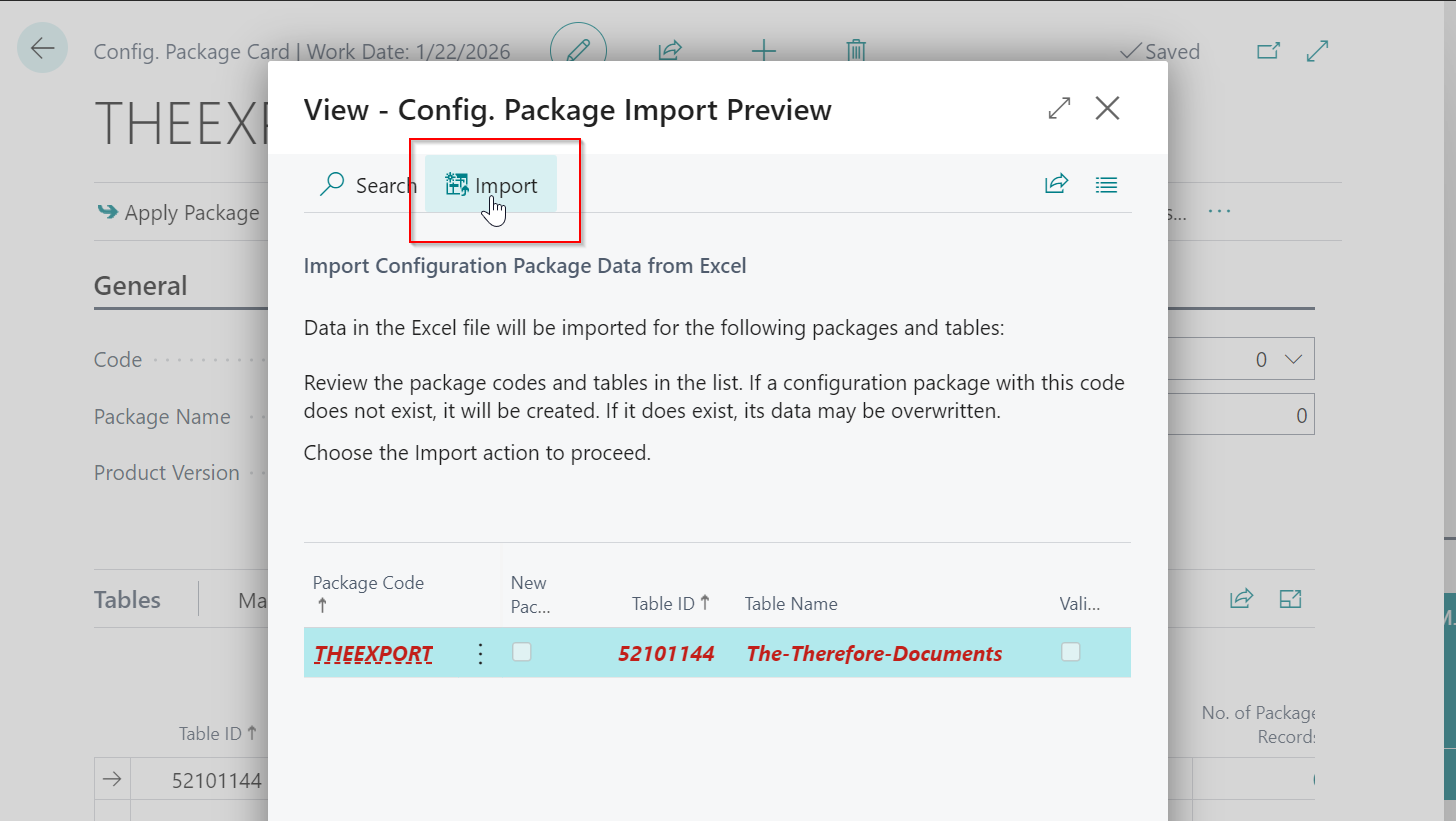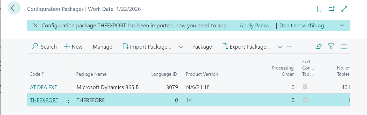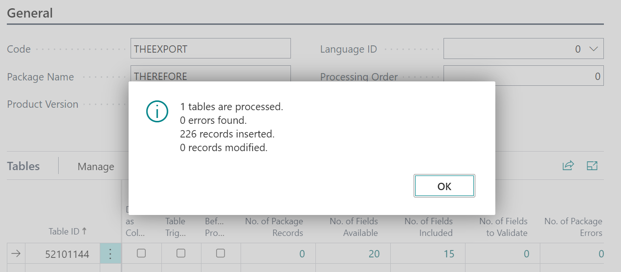 After this step, the “No. of Package Records” should match the number of exported entries from Navision: