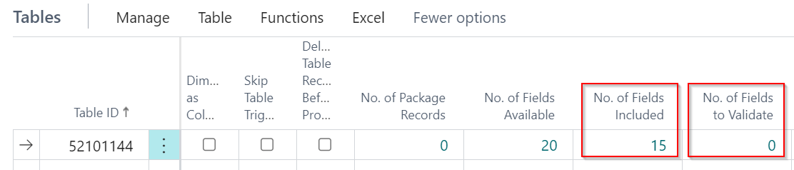 The value for “No. of Fields Included” should be 15 and the value for “No. of Fields to Validate” should be 0.