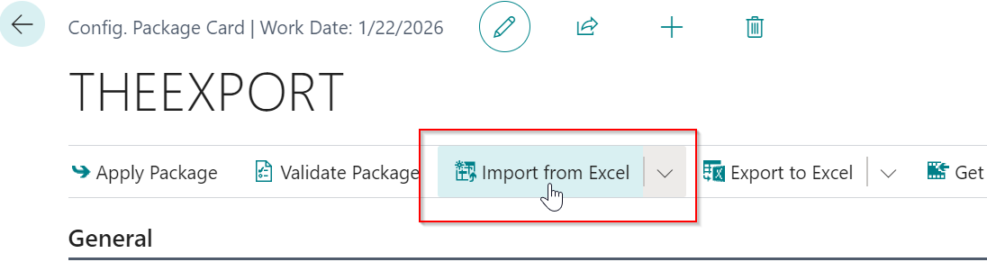 As there are slight differences between the Excel files generated by Navision and by Business Central, the empty Excel needs to be exported from BC.