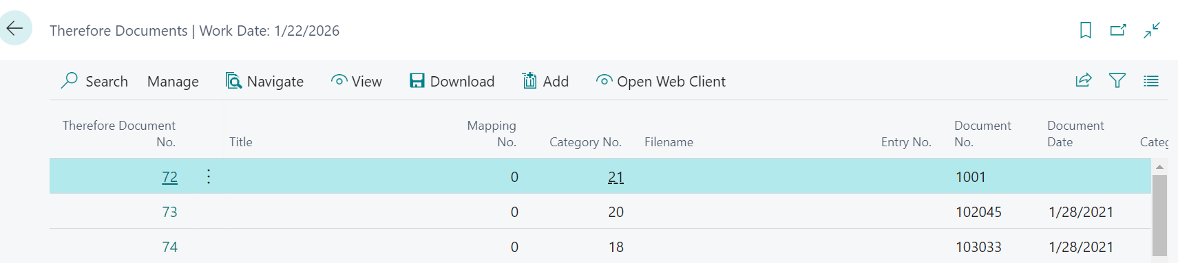 The “Therefore Documents Table” contains all links between NAV/BC-objects and Therefore™ documents.