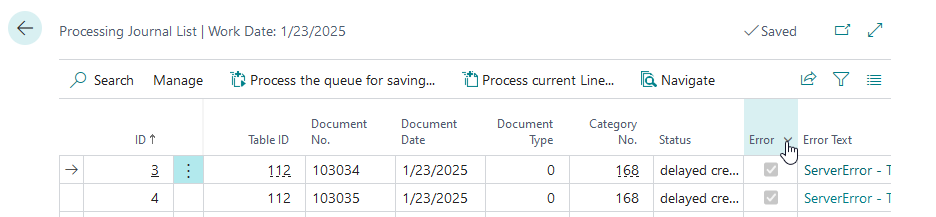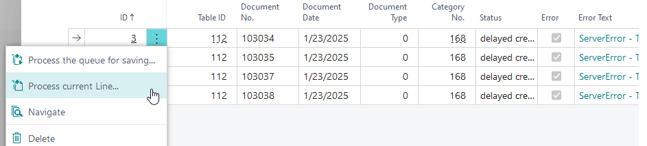 In case saving outgoing documents has failed the document will be marked with “error” in the queue.