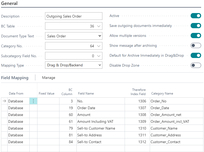 This mapping will be processed a Sales Order is printed and the generated report will be saved to Therefore™.