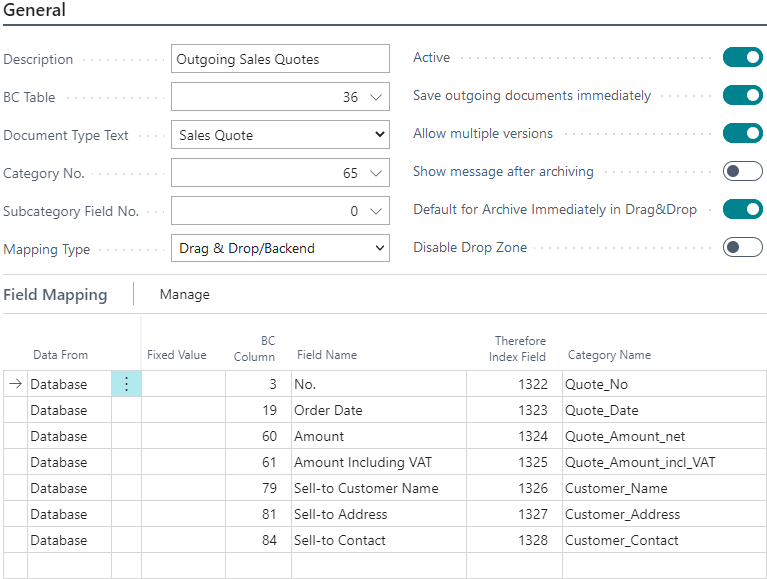 This mapping is processed when the Sales Quote is printed and the generated report will be saved to Therefore™.