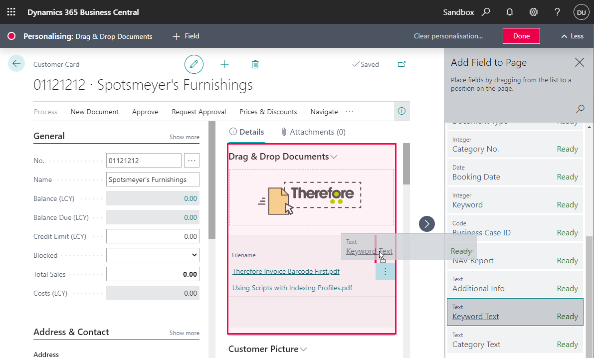 The chosen field should now be visible in the Drop Zone. This change will affect all cards and tables, not just the one that was currently open. Those customizations can also be applied as default for all users.