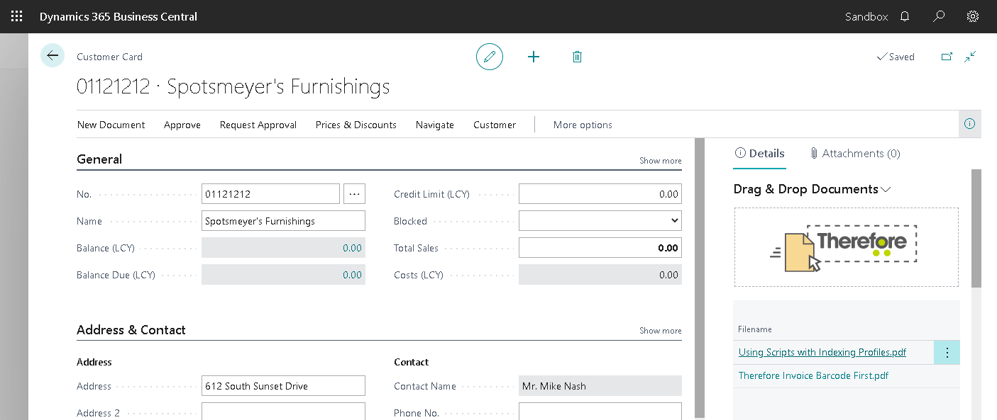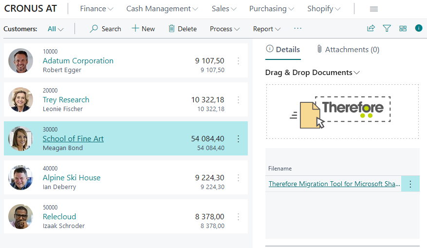 The Therefore™ connector can either be used on a certain page or directly on the list view. For example, this is the list view of Customers.