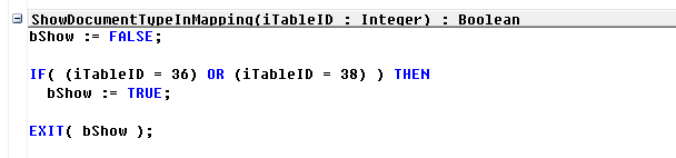 This function makes the field Document type editable in the mapping (in this case for tables 36 and 38).