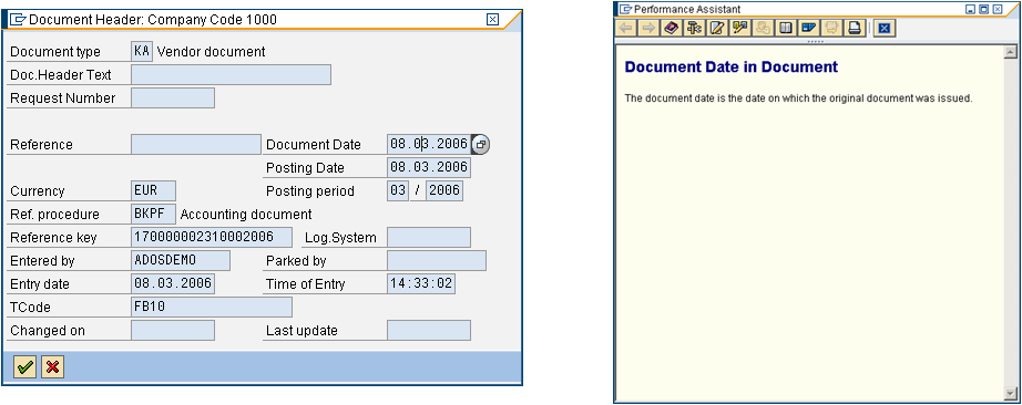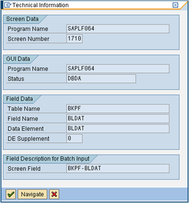 Set the cursor to the field you want to match and press F1. This opens the Performance Assistant. Click the Technical Information icon.