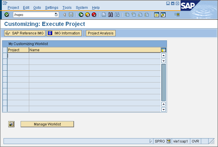 Key in /nspro into the command line a hit ENTER. Click the SAP Reference IMG button.