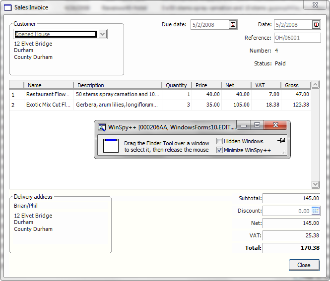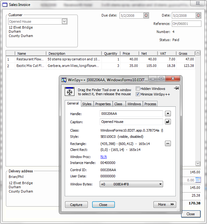 The first test we need to do is to test whether the dialog, from which we would like to trigger the connector, is recognizable. Drag the WinSpy++ Finder Tool onto the required dialog. If a black border is shown, then the test is passed. If not, then the test failed and the connector is not suitable.