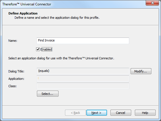 This is the title of the dialog. The term in brackets before the title is the condition and can be "equals", "starts with", "ends with" and "contains". This can be edited by clicking 'Modify'.