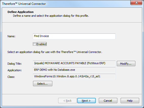 The Finder Tool will close and the Dialog Title, Application and Class will be automatically filled in. If the Dialog Title is a variable click Modify and then change the mode to "starts with" "ends with" or "contains" and specify a text string that will not change. Click Next.