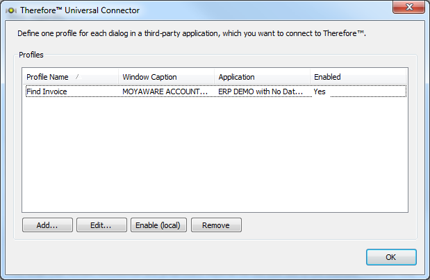 .The new profile will now be listed. Now all users who have the Universal Connector locally installed (via the Therefore™ Client setup) will be able to use this profile.
