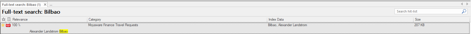 Hinweis: Dokumentkategorien müssen mindestens ein Indexdatenfeld in die Volltextsuche einschließen, damit die Dokumente in dieser Trefferliste angezeigt werden. |