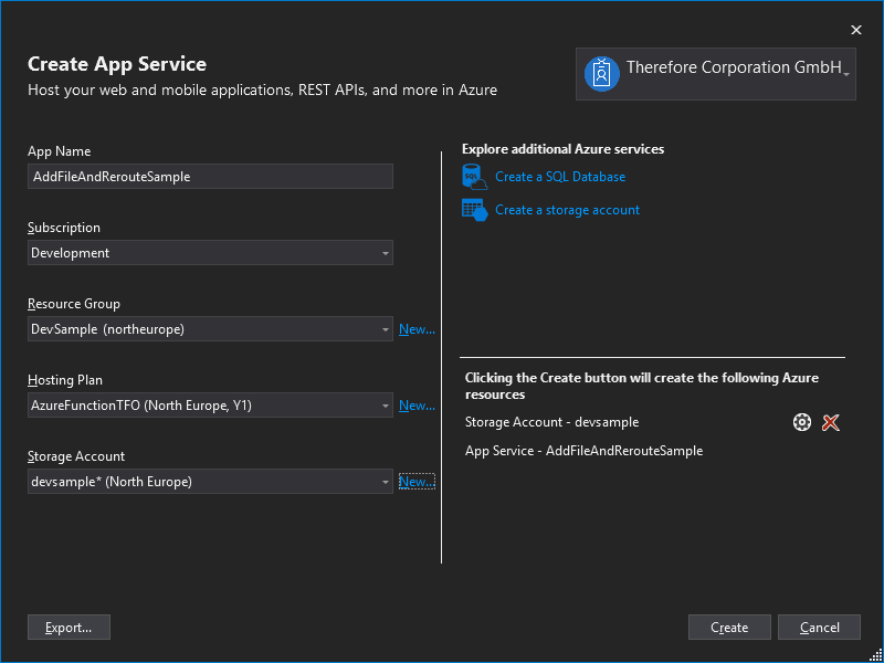 Every Azure Function App needs to have a Storage Account where the functions as well as logs can be stored.